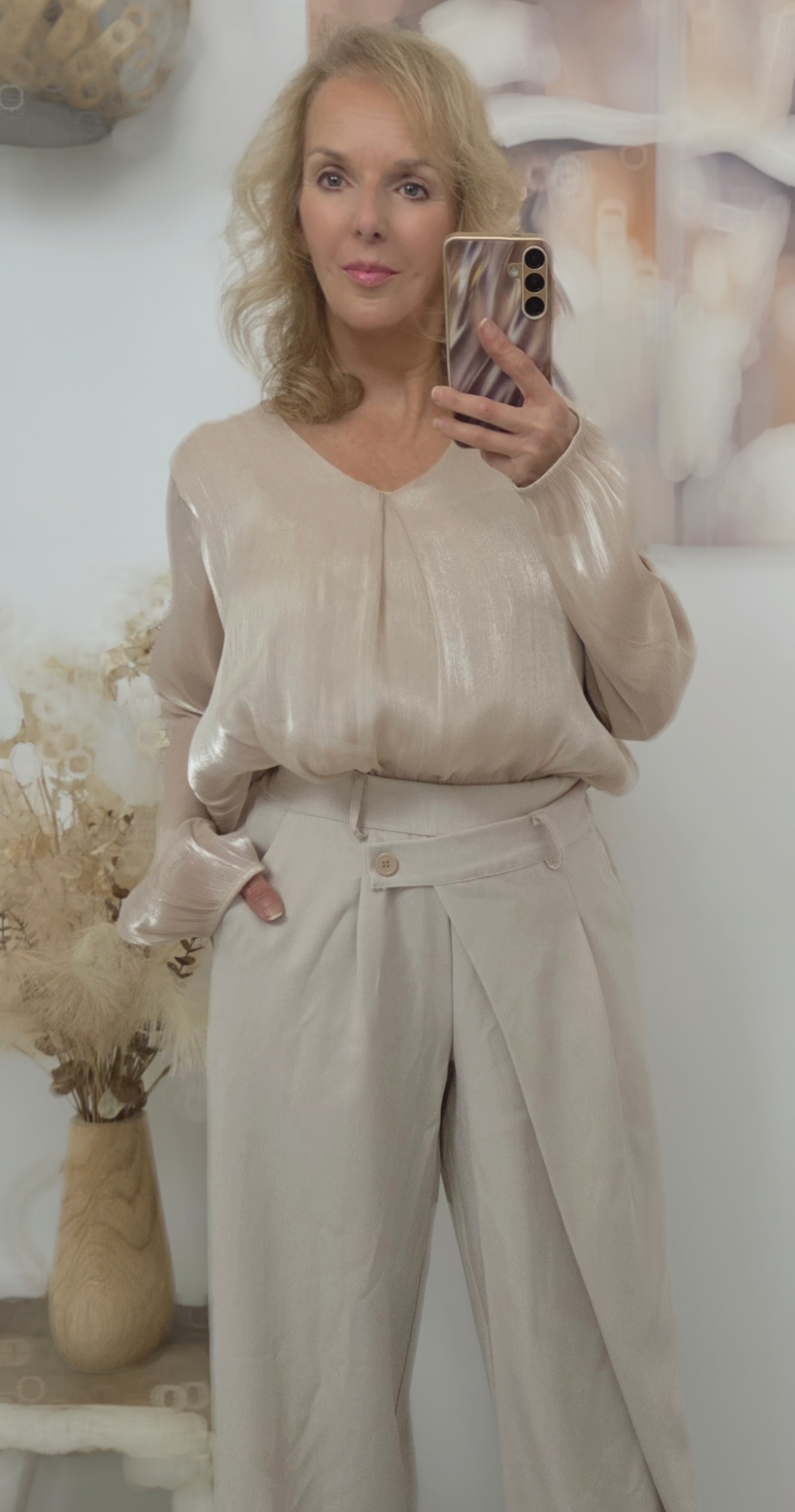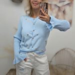 Langere blouse met glans effect.
