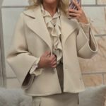 De broekspijpen vallen lang met een flared onderkant.