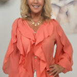 Ruimvallende blouse met roezels koraal