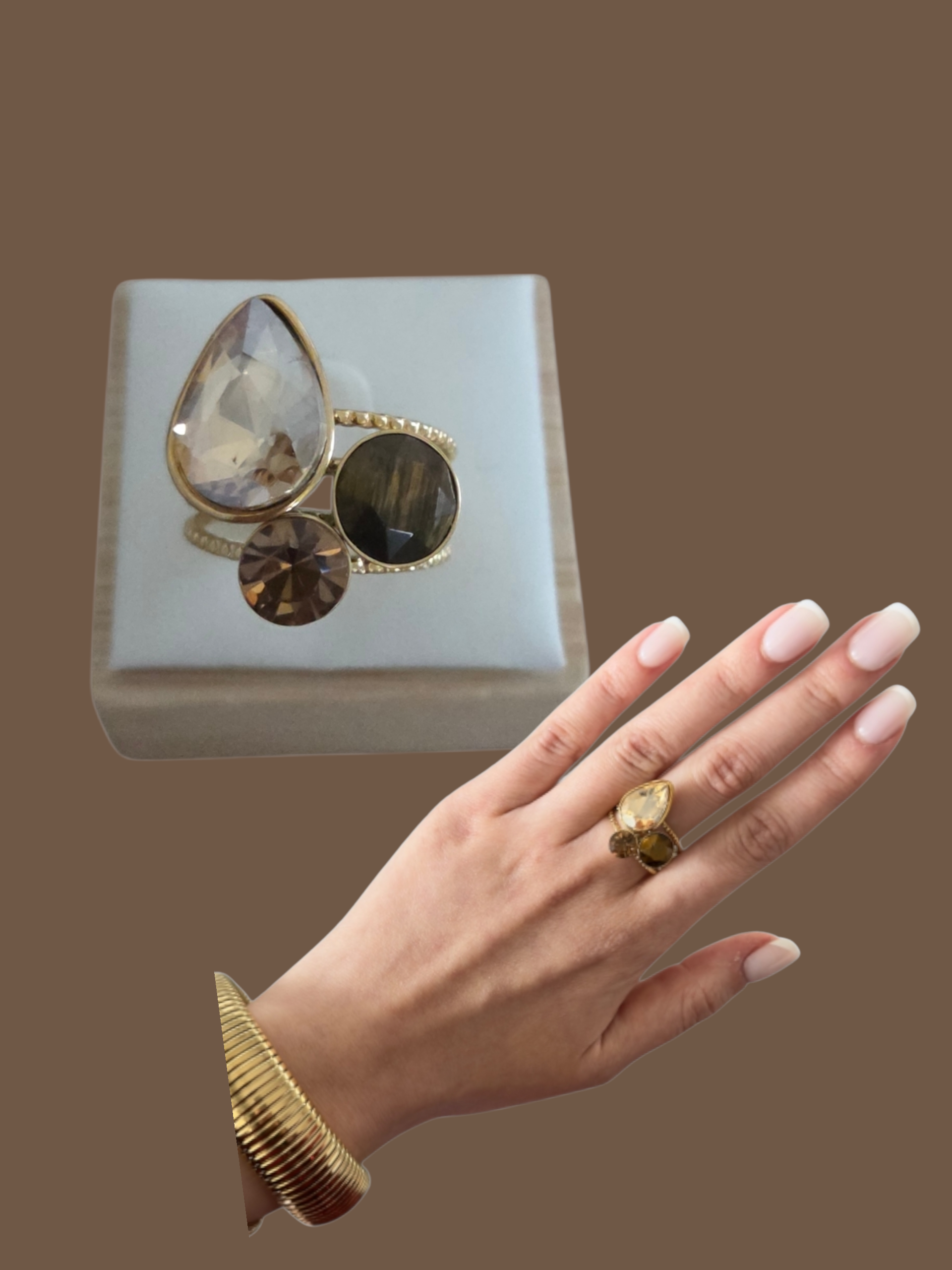 Hoe mooi is deze ring met 3 stenen.